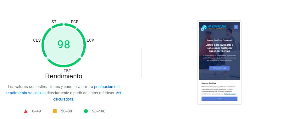 Elimina todas esas trabas y frustraciones que te hacen perder ventas y posiciones en los buscadores con un servicio de optimización de WordPress profesional que aumentará al máximo posible tu puntuación en Google PageSpeed Insights.